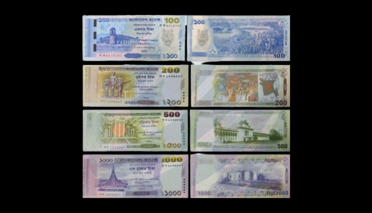 নতুন ডিজাইনের ১০০ টাকার নোটে এক পাশে রয়েছে বাগেরহাটের ঐতিহাসিক ষাট গম্বুজ মসজিদ ও জাতীয় প্রাণী রয়েল বেঙ্গল টাইগারের জলছবি। অপর পাশে দেখা যাবে সুন্দরবনের দৃশ্য, যেখানে রয়েছে হরিণের ঝাঁক ও একটি বাঘের ছবি। সাদা অংশেও রয়েছে বাঘের জলছবি।২০০ টাকার নোটে হালকা হলুদ পটভূমিতে দেখা যাবে ঢাকা বিশ্ববিদ্যালয়ের কলা ভবনের সামনে স্থাপিত অপরাজেয় বাংলা ভাস্কর্য। অপর পাশে তুলে ধরা হয়েছে বাংলাদেশের ধর্মীয় সম্প্রীতির প্রতিচিত্র—মুসলিম, হিন্দু, খ্রিষ্টান ও বৌদ্ধ সম্প্রদায়ের উপাসনালয় ও পোশাকে মানুষের চিত্র, মাঝখানে সবুজ পটভূমিতে দেশের মানচিত্র। ৫০০ টাকার নোটে এক পাশে রয়েছে কেন্দ্রীয় শহীদ মিনার এবং অপর পাশে বাংলাদেশ সুপ্রিম কোর্টের ছবি। ১০০০ টাকার নোটে একদিকে রয়েছে সাভারের জাতীয় স্মৃতিসৌধ এবং অন্যদিকে জাতীয় সংসদ ভবন—যা যথাক্রমে বাংলাদেশের স্বাধীনতা ও গণতন্ত্রের প্রতীক।